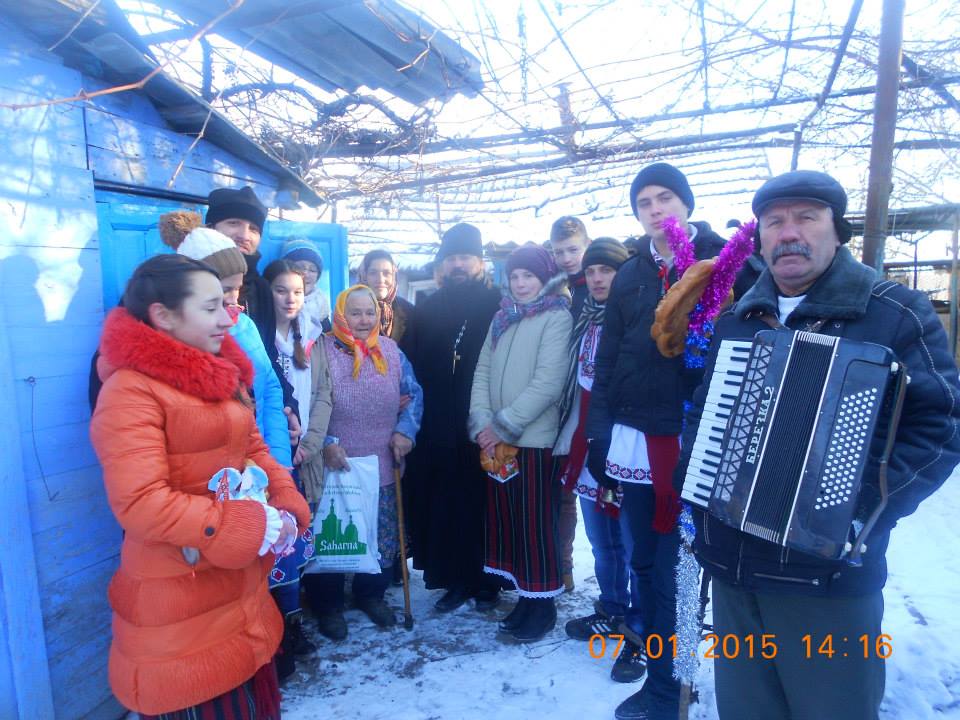Cu ocazia frumoasei sărbători și luminosului praznic ,,Nașterea Domnului”, câțiva elevi din clasele Gimnaziului Saharna-Nouă alături de preotul paroh Ieromonahul Vartolomeu Murea și profesorul de religie Ieromonahul Vasilisc Donica, Lazari Iurie,profesor ed.muzicala, în frunte cu Directorul Doamna Tamara Peru au împărțit frumoasa bucurie a Nașterii Domnului cu batrâneii satului,cei care au fost păstrători credinței, frumosului, a tradițiilor și obiceiurilor străbune.Pentru lucrurile mărețe și sfinte, care le-au păstrat și transmis tinerii generației, elevii i-au încântat cu un program de colinde și i-au urat de sănătate și de voie bună, aducându-le în dar câte un mic colet cu daruri și merinde pentru masa de sărbătoare.
