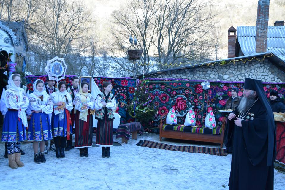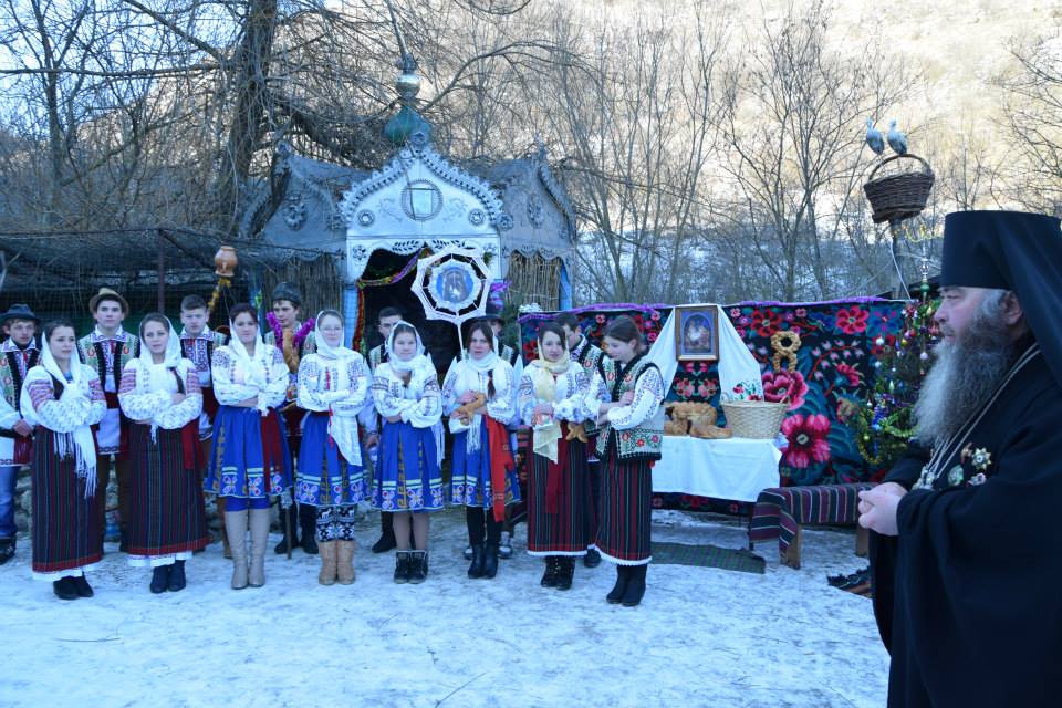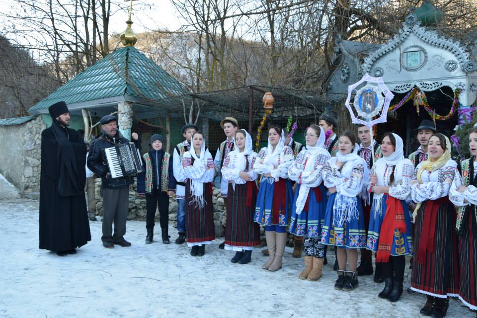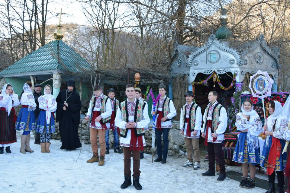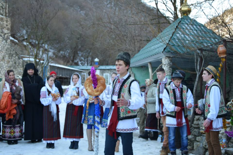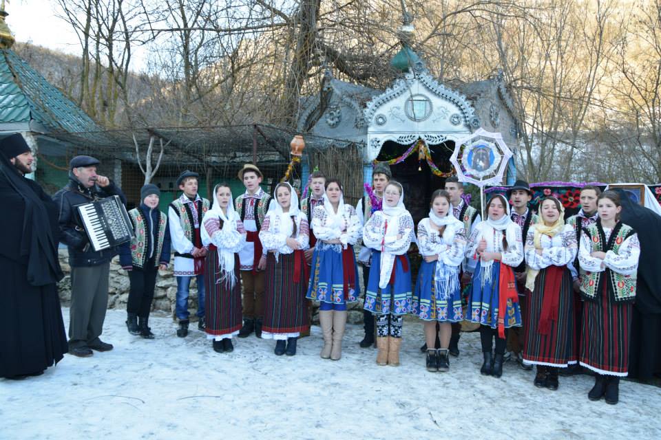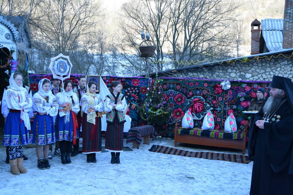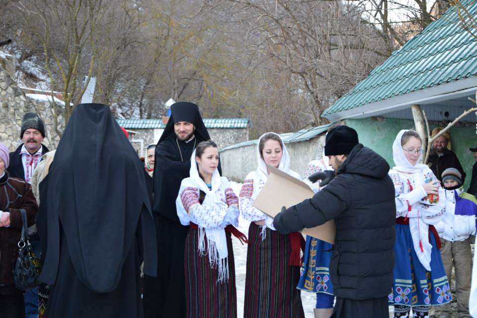 În această zi cu adevărat binecuvântată de sus cu multă zăpadă și ger, în biserica frumos îmbrăcată în straie de de sărbatoare, ca o mireasă, după săvârșirea Sfintei Liturghii și predica de sărbătoare, obștea monahală împreună cu toți creștini au ieșit în curtea mănăstiri unde în casa mare frumos împrovizată alături de peștera unde s-a născut Hristos au fost primite cetele de colindători.