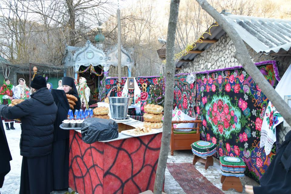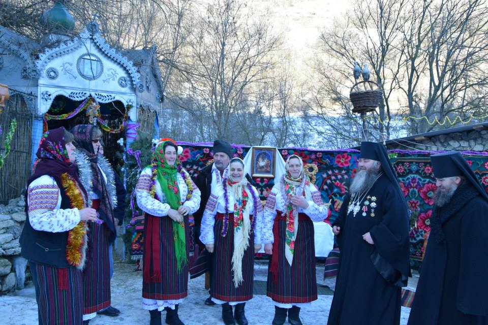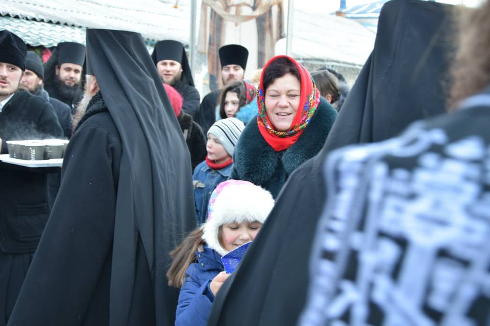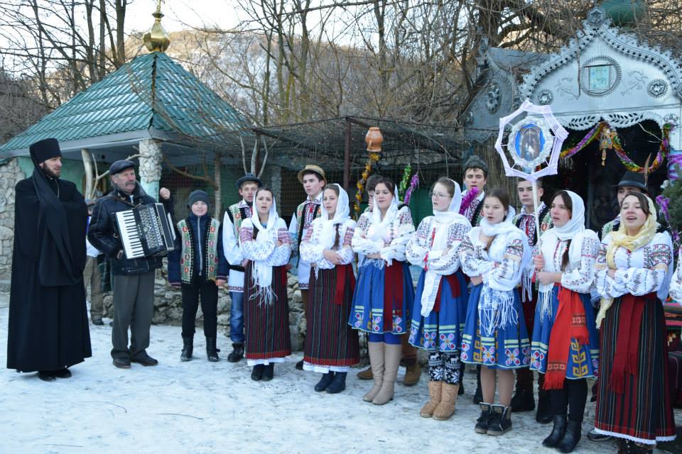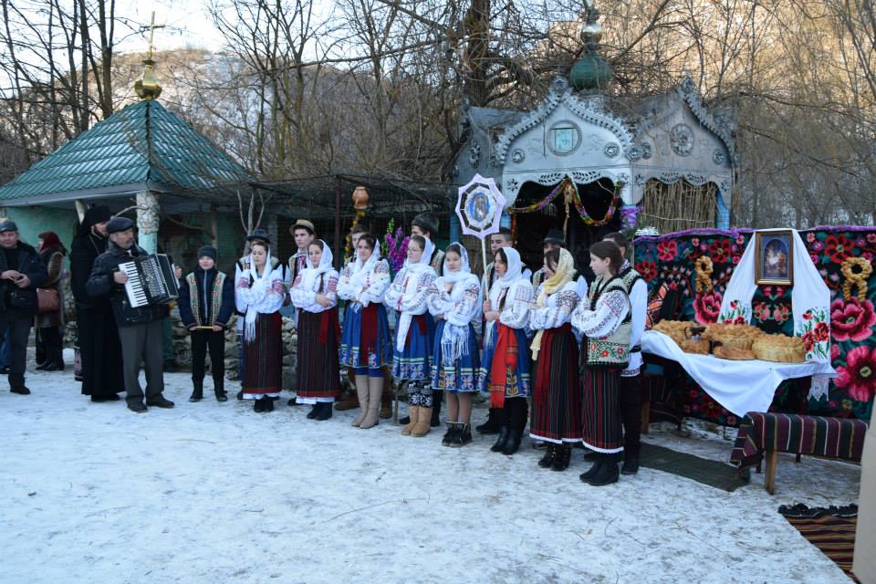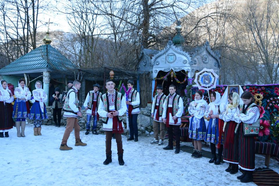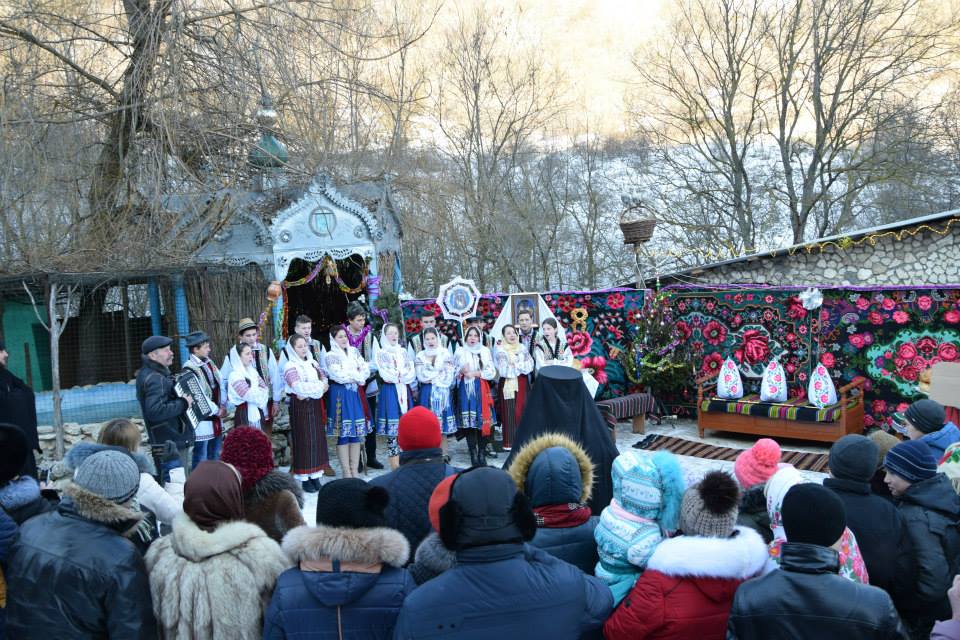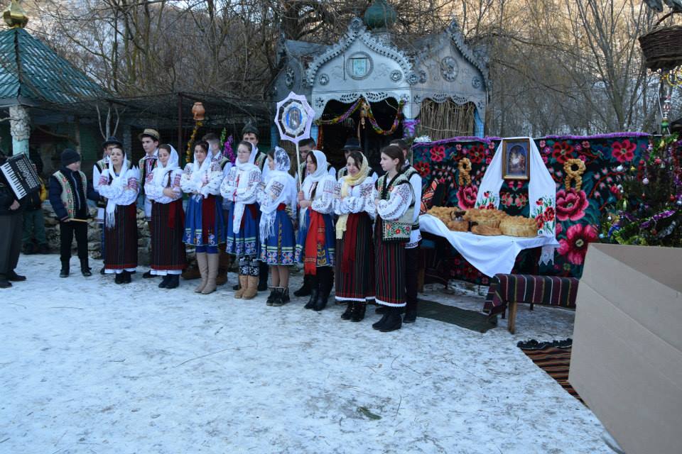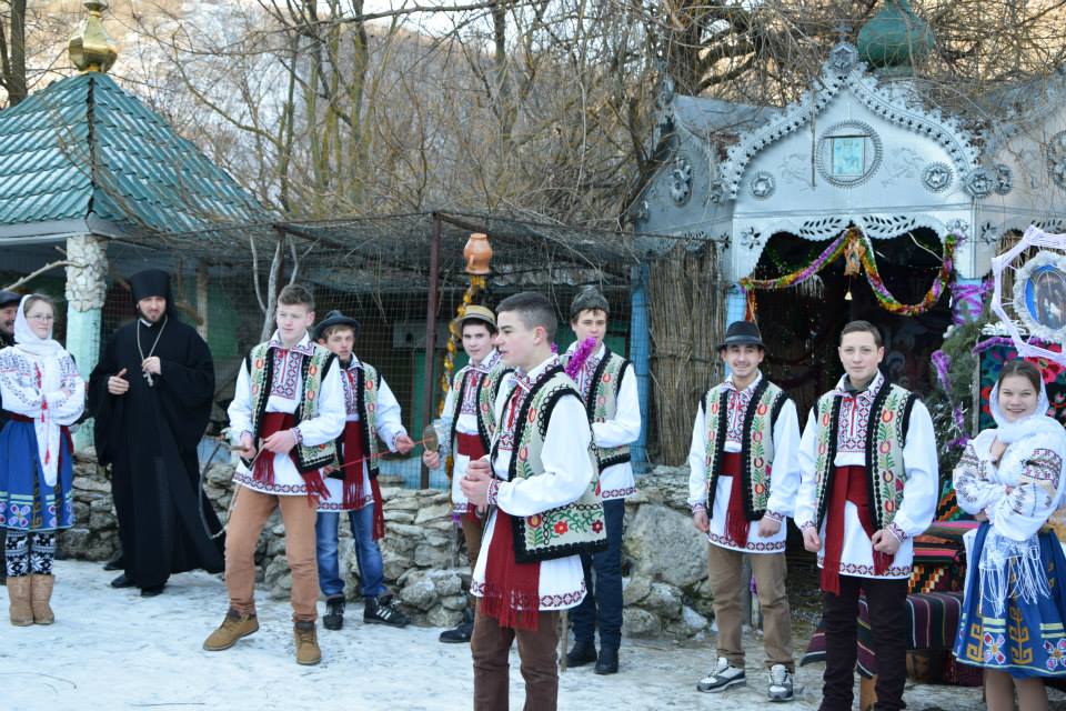 În această zi cu adevărat binecuvântată de sus cu multă zăpadă și ger, în biserica frumos îmbrăcată în straie de de sărbatoare, ca o mireasă, după săvârșirea Sfintei Liturghii și predica de sărbătoare, obștea monahală împreună cu toți creștini au ieșit în curtea mănăstiri unde în casa mare frumos împrovizată alături de peștera unde s-a născut Hristos au fost primite cetele de colindători.