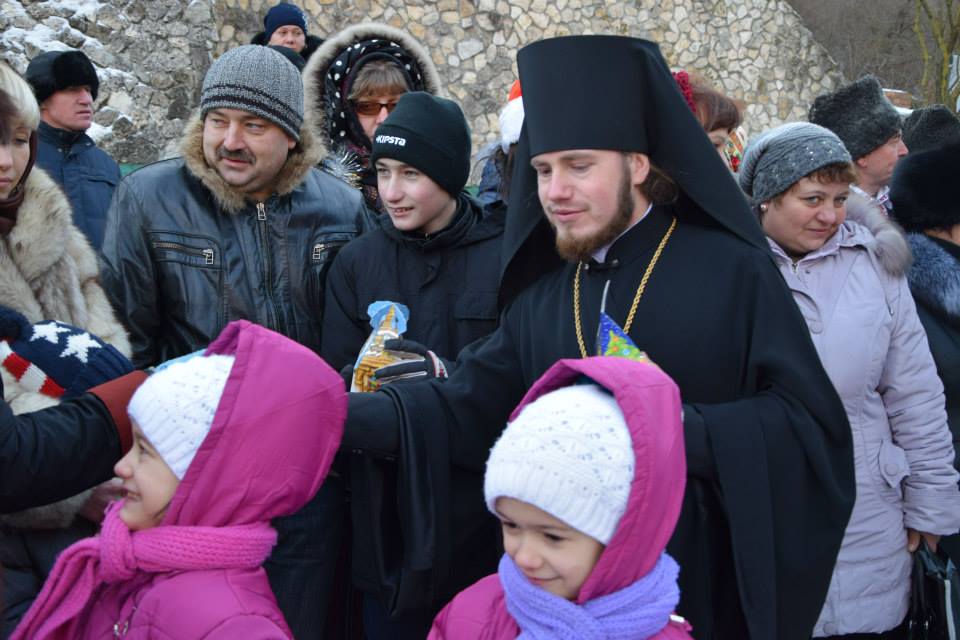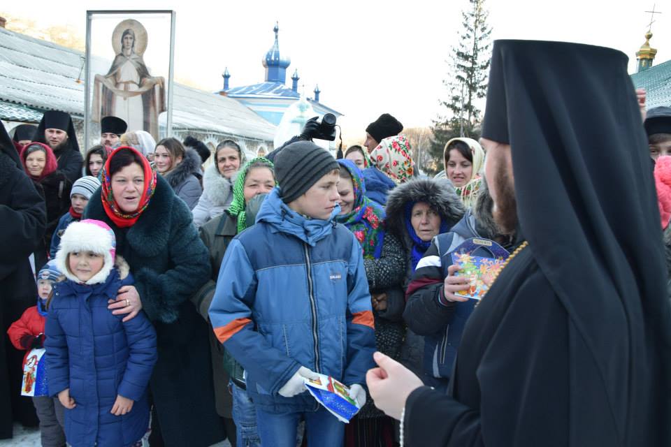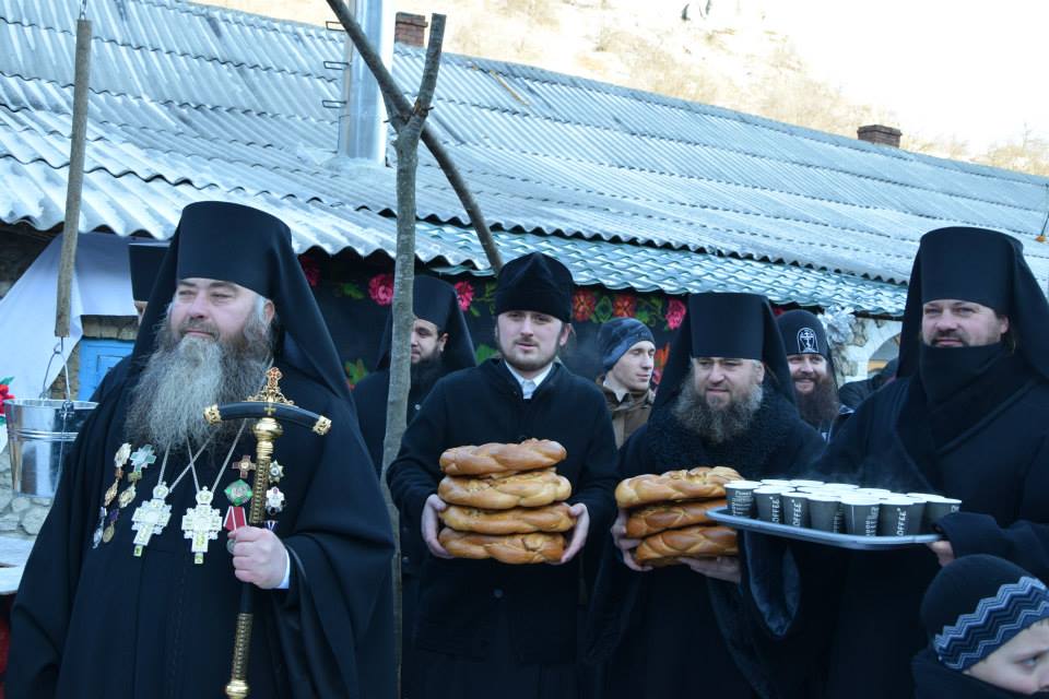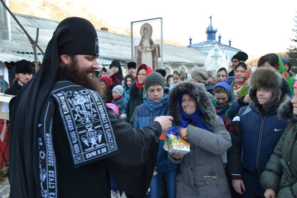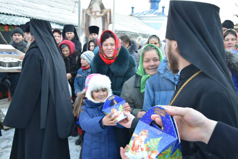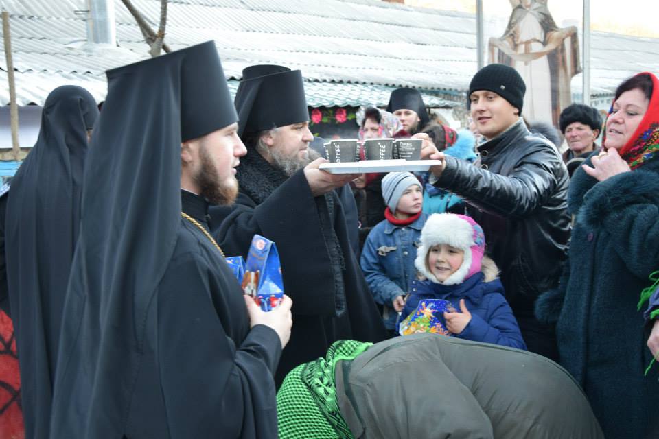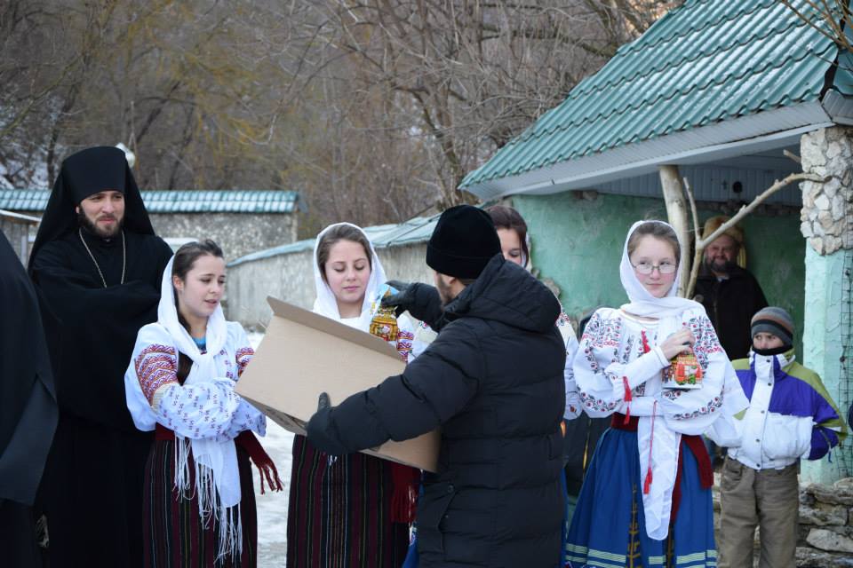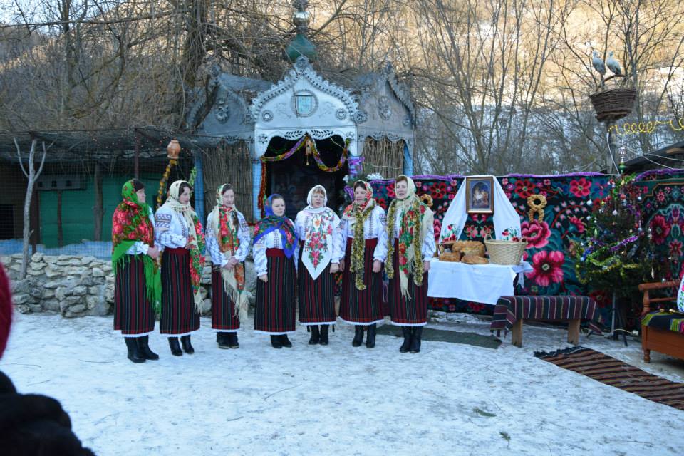 În această zi cu adevărat binecuvântată de sus cu multă zăpadă și ger, în biserica frumos îmbrăcată în straie de de sărbatoare, ca o mireasă, după săvârșirea Sfintei Liturghii și predica de sărbătoare, obștea monahală împreună cu toți creștini au ieșit în curtea mănăstiri unde în casa mare frumos împrovizată alături de peștera unde s-a născut Hristos au fost primite cetele de colindători.