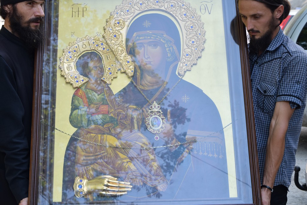 «Mănăstirea Hilandar o ai împodobit cu prea cinstită icoana Ta, păzindu-o de săgeţile vrăjmaşilor nevăzuţi cu mâna Ta cea tare, pe care o întinde şi spre noi şi ne binecuvântează ca să-Ţi împletim Ţie cununi de laude» ( din acatistul la Icoana Maicii Domnului TRICHEROUSA )